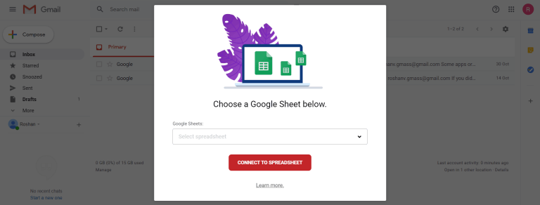 How to Create a Mail Merge with Google Sheets Alternatively you can download the Right Inbox extension, that will allow you to do a mail merge within Gmail. Step 1. You'll need to head over here and make a copy of the Gmail/Google Sheets Mail Merge spreadsheet template. Step 2. Add the email addresses of your recipients into the column marked Recipient. Step 3.
