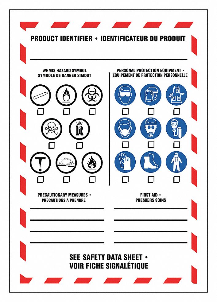 Whmis labels and symbols. 10 Types of WHMIS Labels and Their Symbol Meanings Jun 24, 2021 · Here are the ten different types of WHMIS labels and their symbol meanings: Type #1: Flame symbols. You may recognize this common safety symbol, which features a flame and a line underneath it. This WHMIS label’s meaning indicates that the product is a potential fire hazard, meaning that it can ignite easily. The item may also combust rapidly ... Understanding Canadian WHMIS Symbols - Nexreg WHMIS 2015 refers to the use of symbols as pictograms: a graphical composition with graphical elements such as specific symbols, borders, and colouring. WHMIS Symbols - Safe and Certified Symbols represent an idea that is conveyed using a picture without words. A set of standardized pictograms is used by WHMIS on product labels and data ... Hazard symbol - Wikipedia Chemical symbols. A chemical hazard symbol is a pictogram applied to containers of dangerous chemical compounds to indicate the specific hazard, and thus the required precautions. There are several systems of labels, depending on the purpose, such as on the container for end-use, or on a vehicle during transportation.